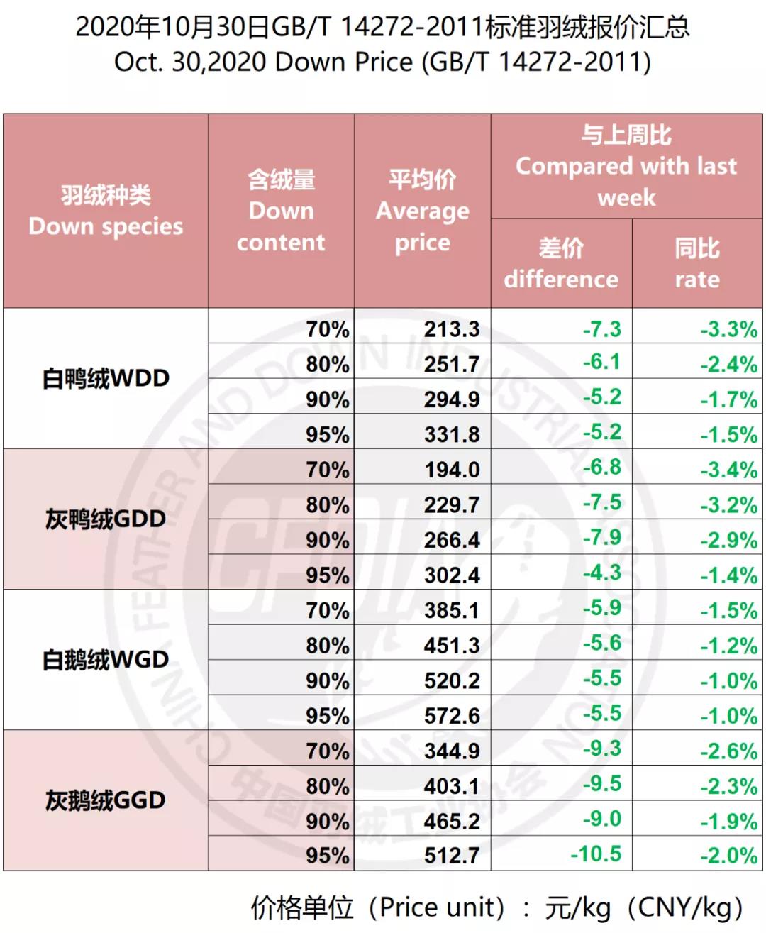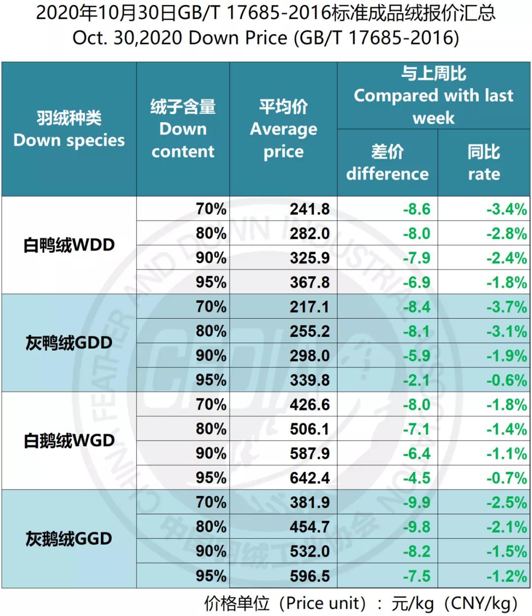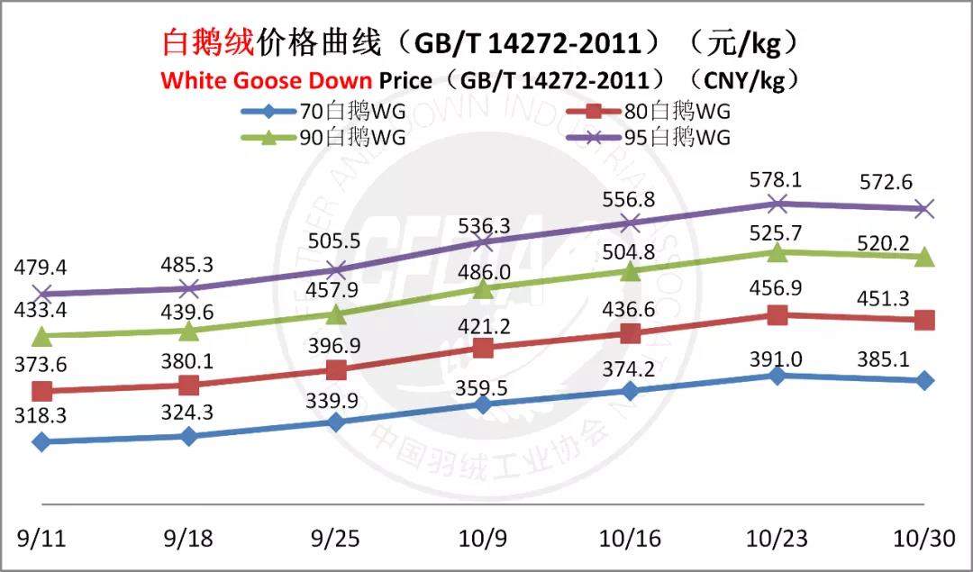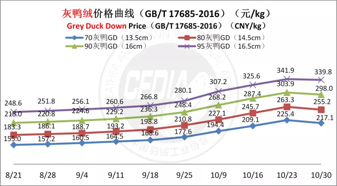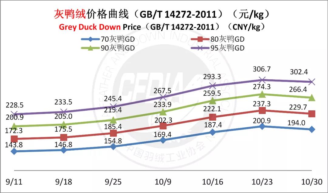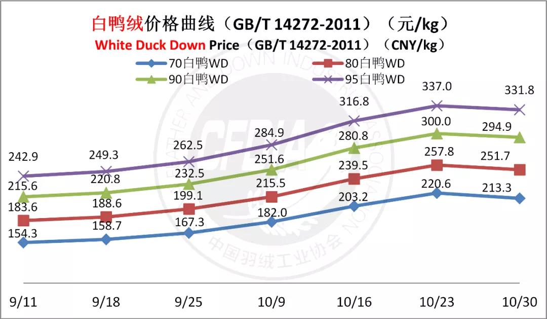 In order to keep abreast of the market situation of down industry meanwhile maintain healthy market competition order, CFDIA has invited several down companies in domestic key down production areas to participate in a routine statistic of finished down price and summarized all data. From now on, CFDIA will release the summarized quotation on a regular basis.