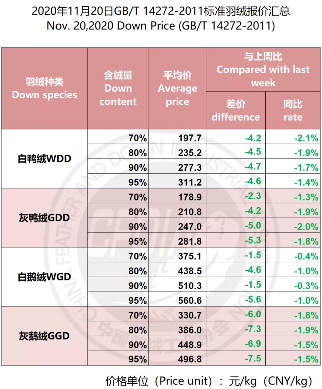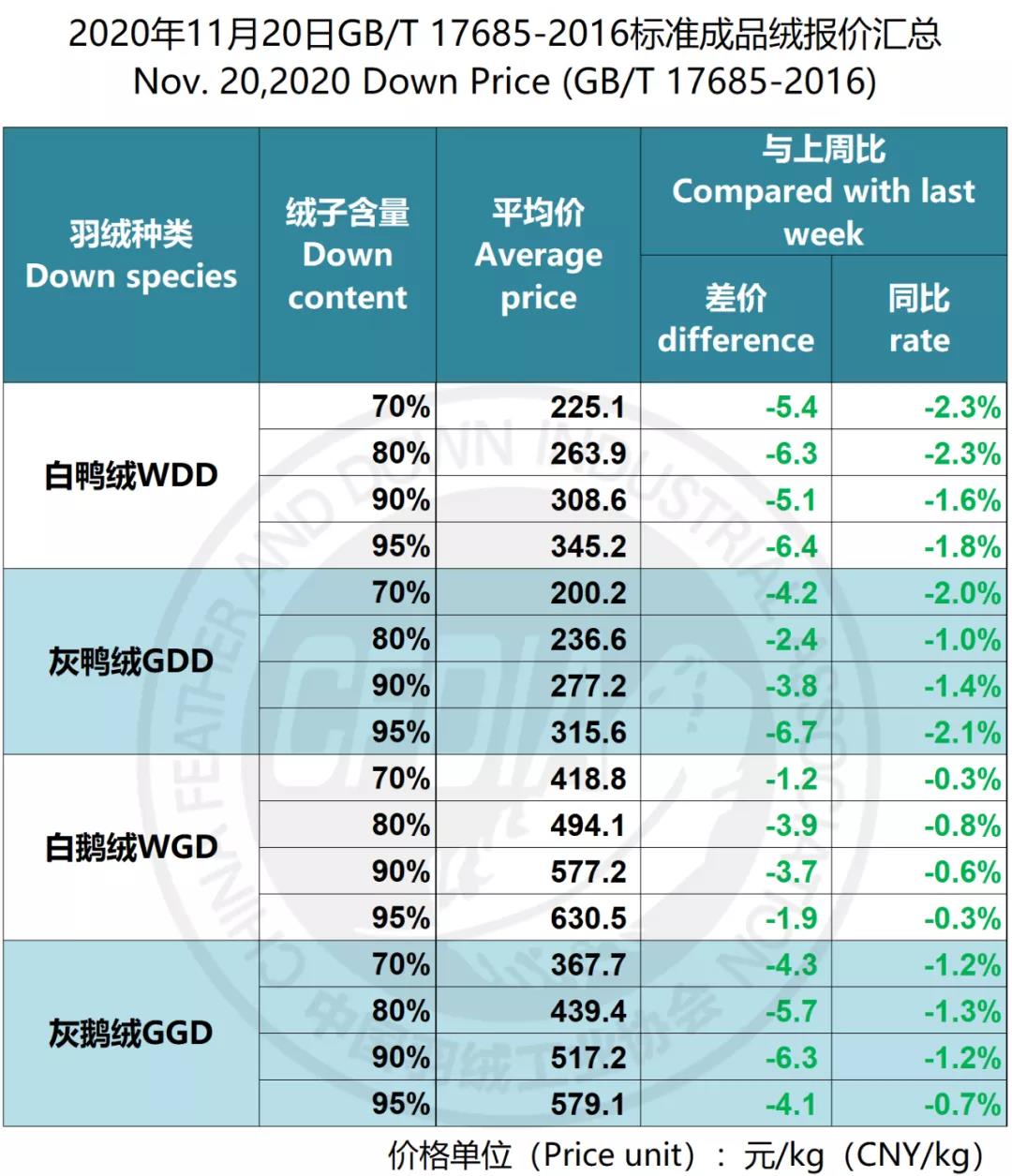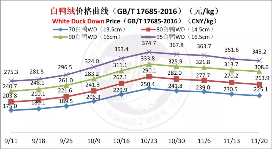 In order to keep abreast of the market situation of down industry meanwhile maintain healthy market competition order, CFDIA has invited several down companies in domestic key down production areas to participate in a routine statistic of finished down price and summarized all data. From now on, CFDIA will release the summarized quotation on a regular basis.
