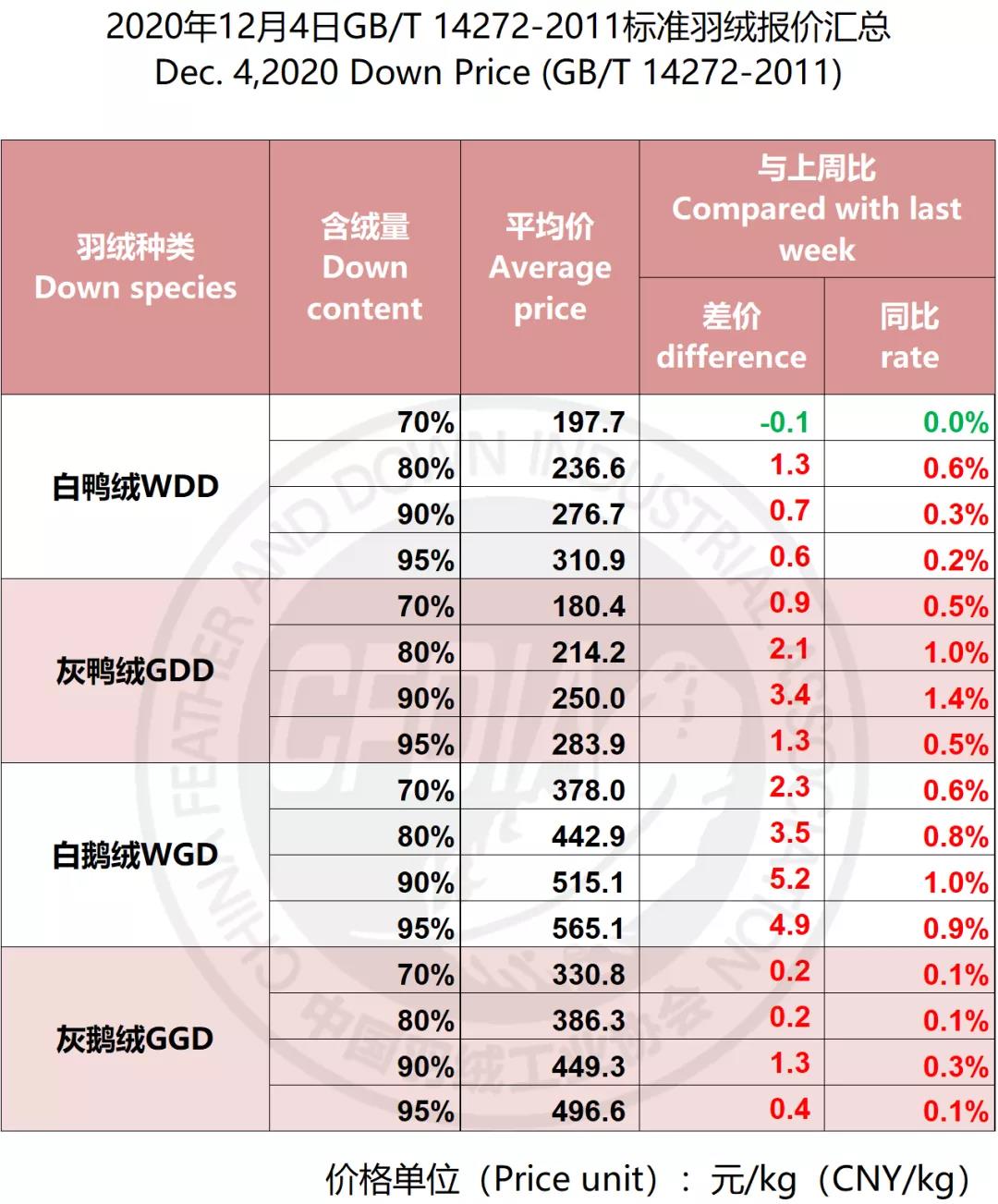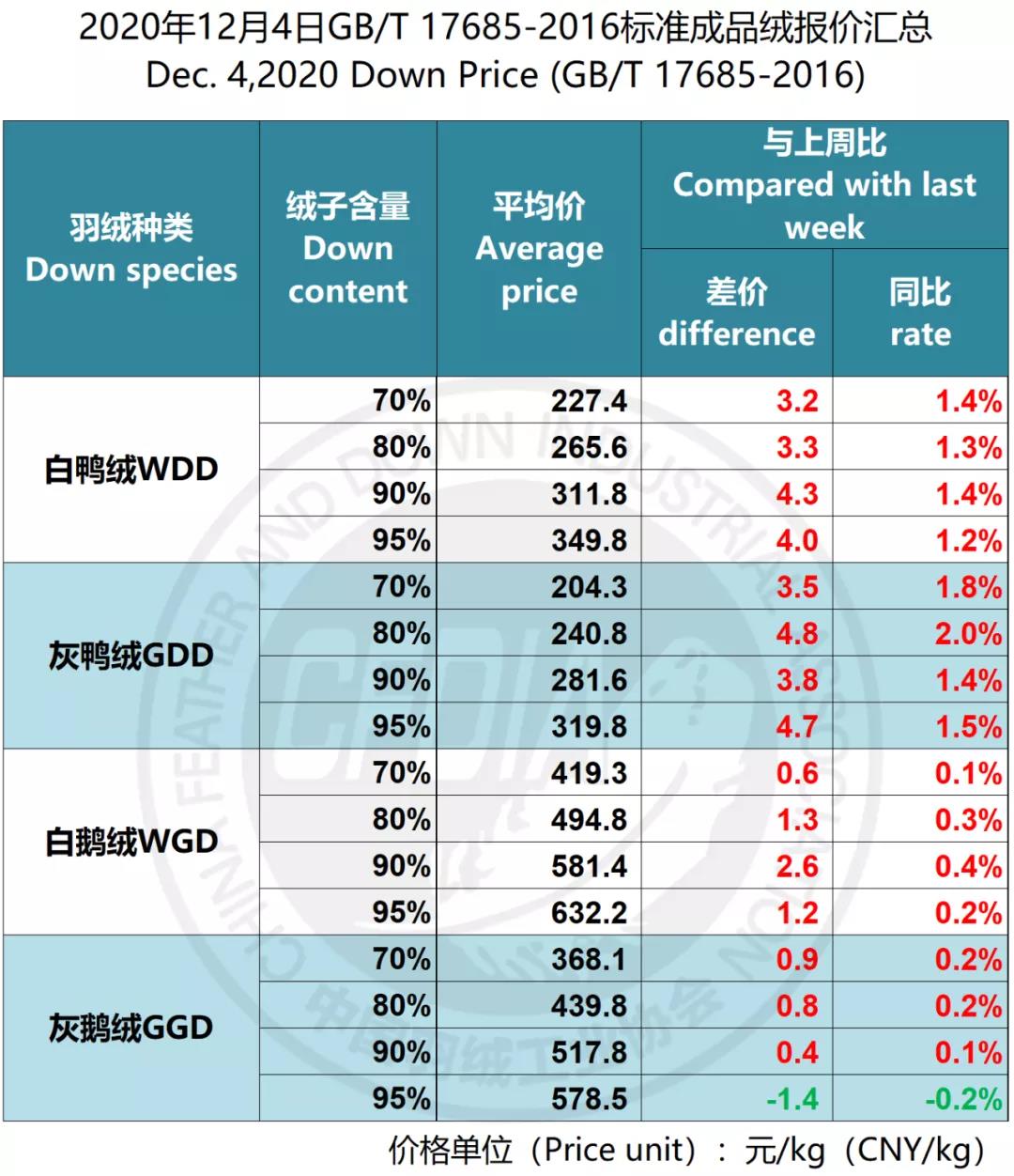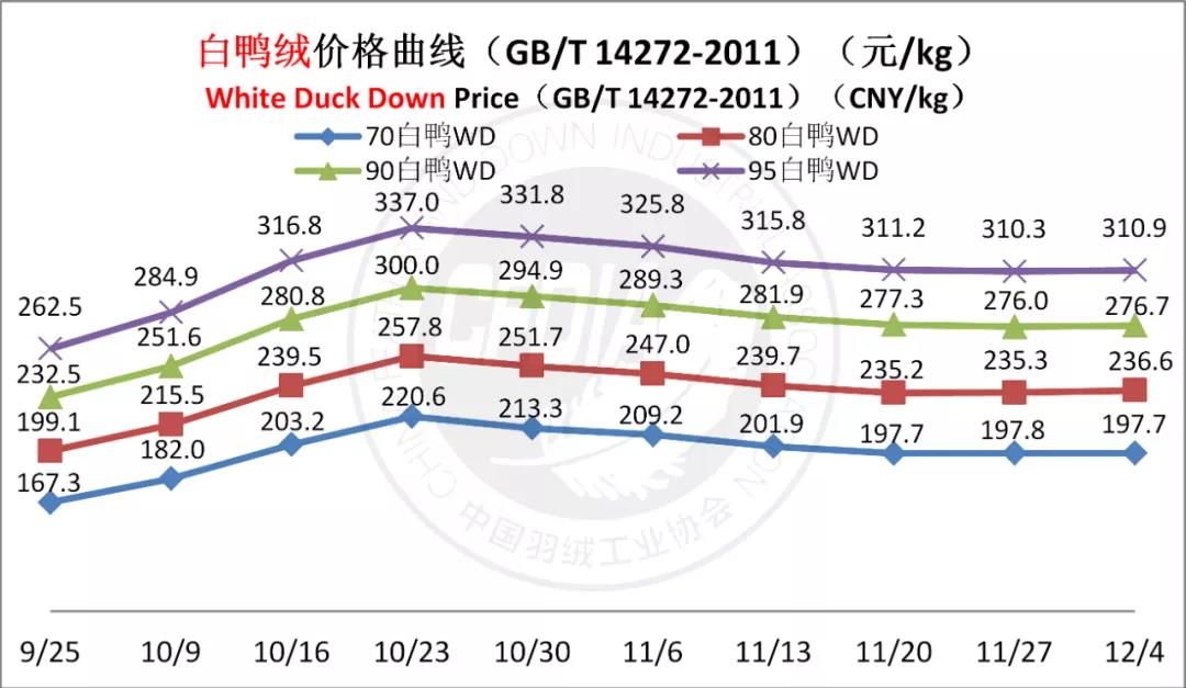 In order to keep abreast of the market situation of down industry meanwhile maintain healthy market competition order, CFDIA has invited several down companies in domestic key down production areas to participate in a routine statistic of finished down price and summarized all data. From now on, CFDIA will release the summarized quotation on a regular basis.