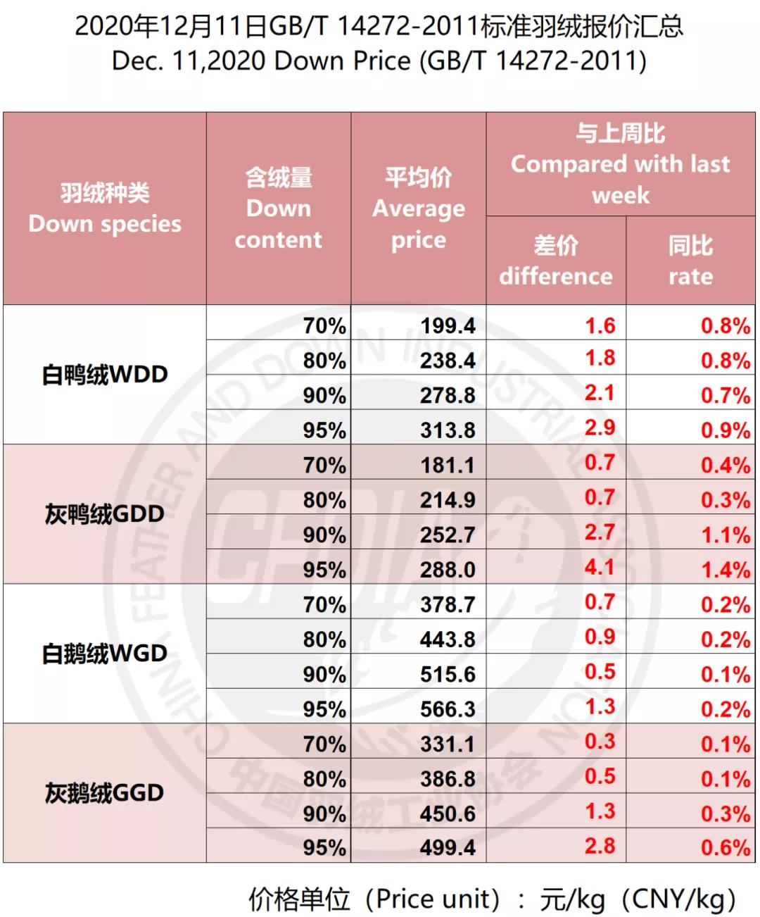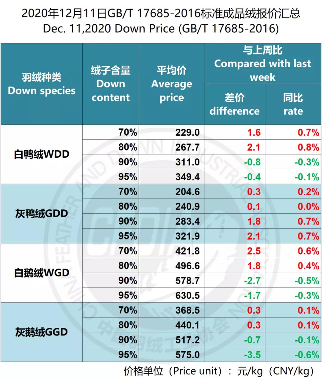In order to keep abreast of the market situation of down industry meanwhile maintain healthy market competition order, CFDIA has invited several down companies in domestic key down production areas to participate in a routine statistic of finished down price and summarized all data. From now on, CFDIA will release the summarized quotation on a regular basis.