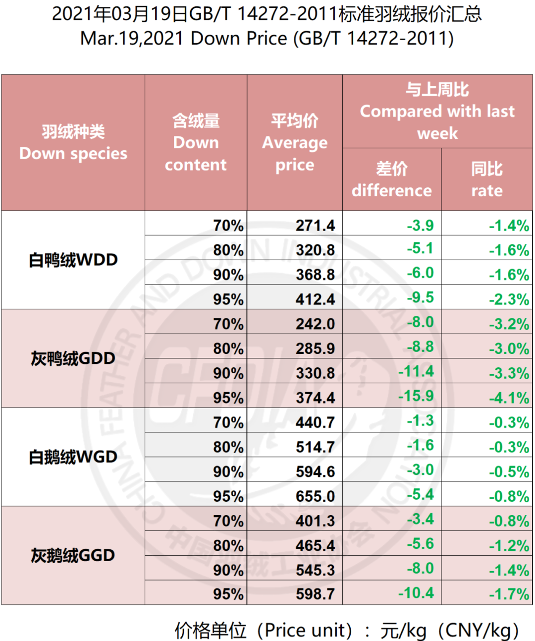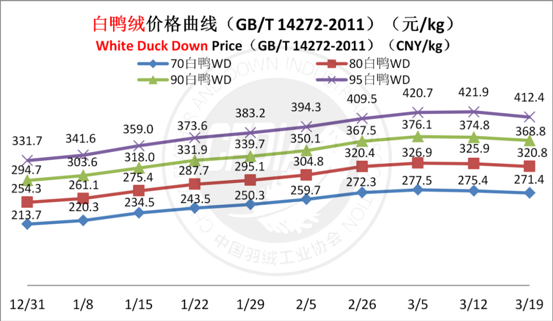 In order to keep abreast of the market situation of down industry meanwhile maintain healthy market competition order, CFDIA has invited several down companies in domestic key down production areas to participate in a routine statistic of finished down price and summarized all data. From now on, CFDIA will release the summarized quotation on a regular basis.