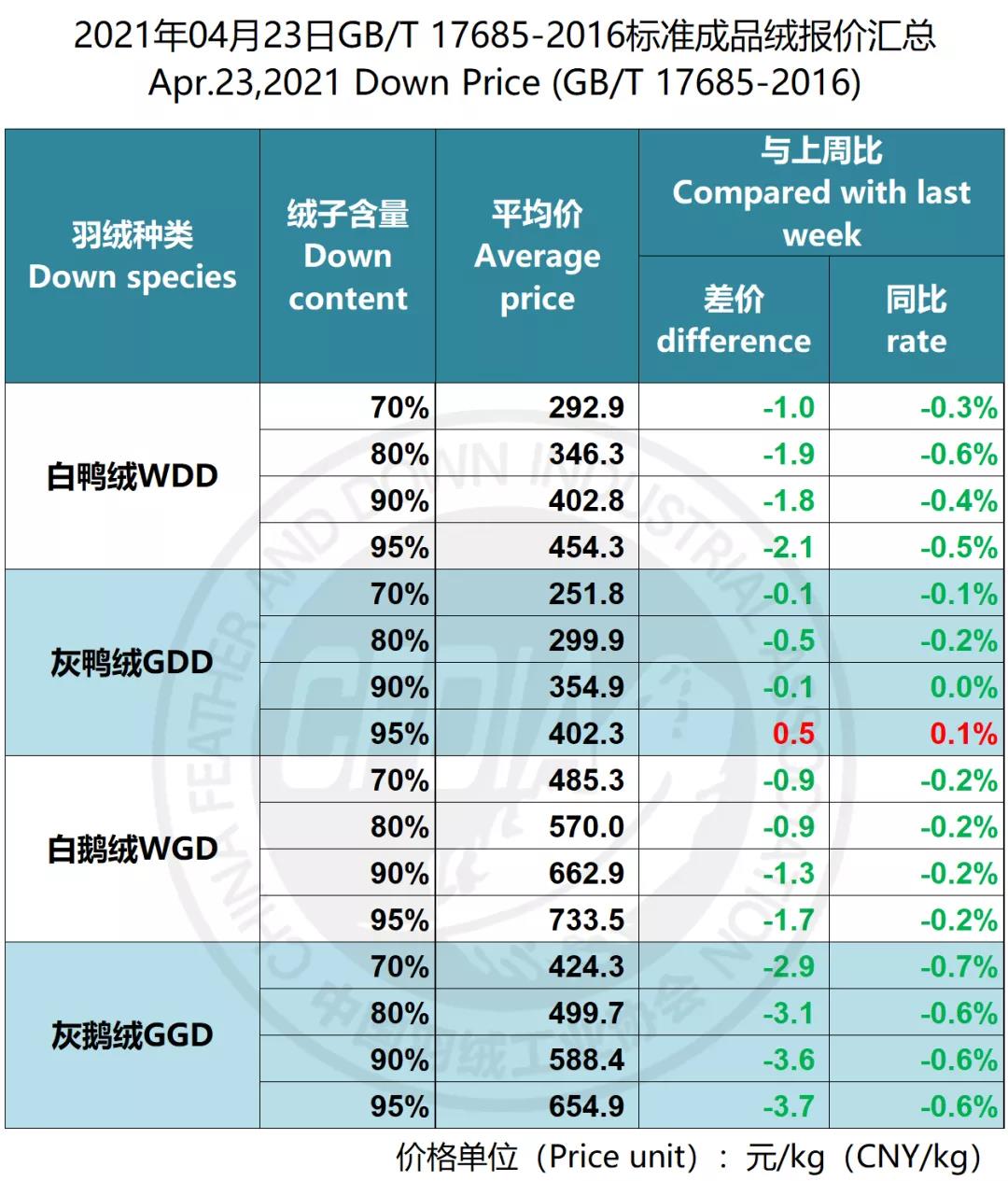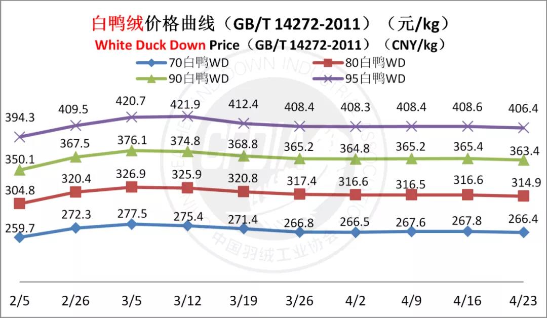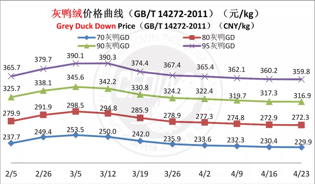 In order to keep abreast of the market situation of down industry meanwhile maintain healthy market competition order, CFDIA has invited several down companies in domestic key down production areas to participate in a routine statistic of finished down price and summarized all data. From now on, CFDIA will release the summarized quotation on a regular basis.