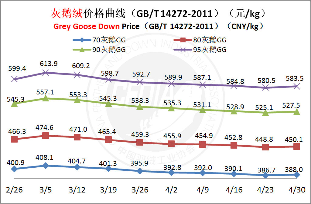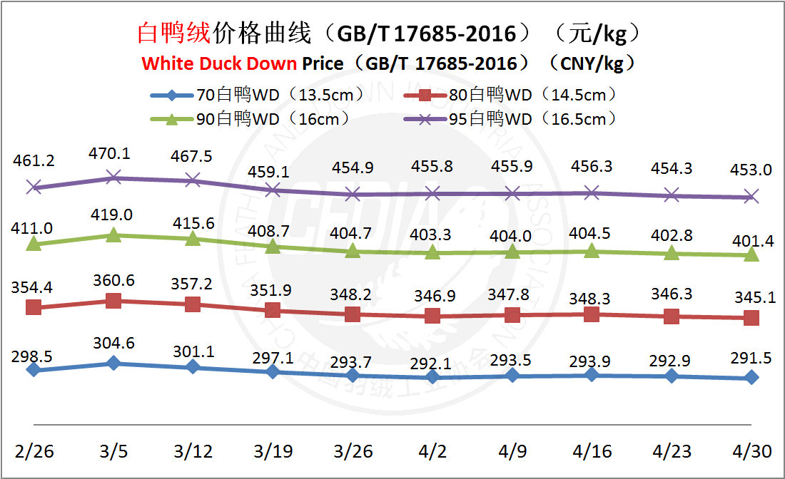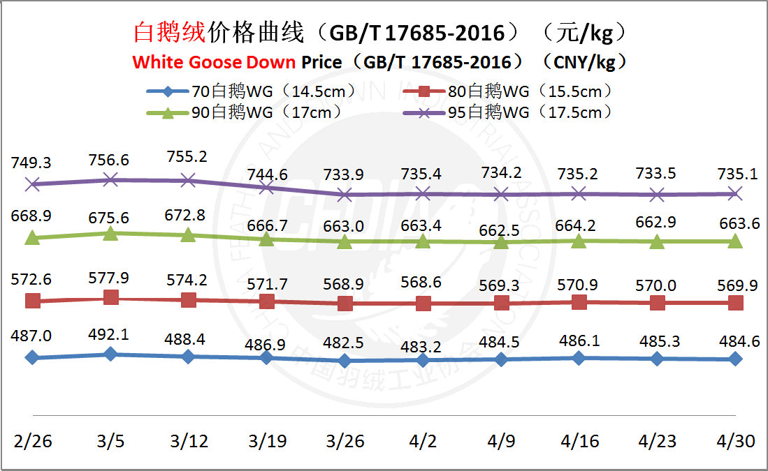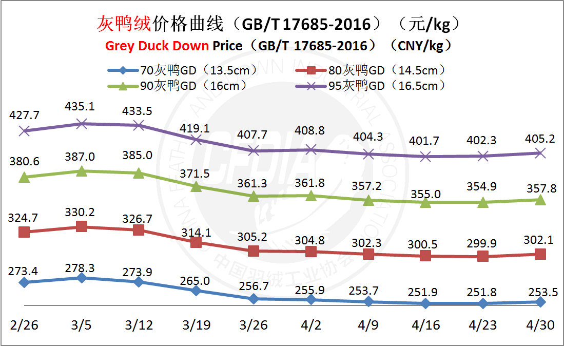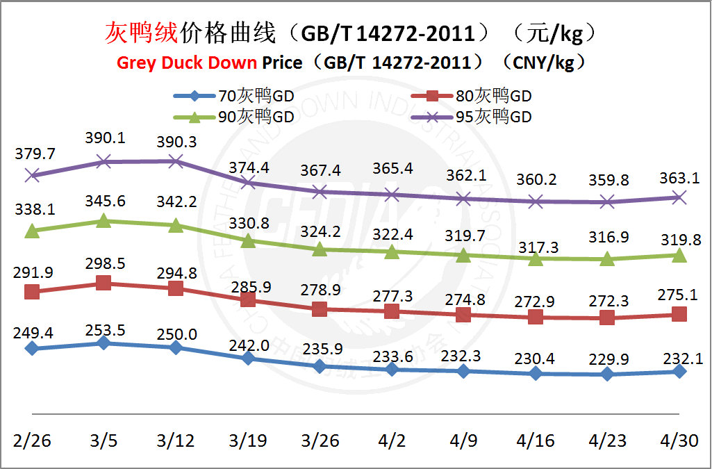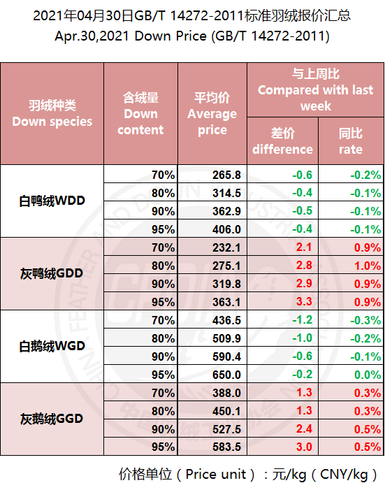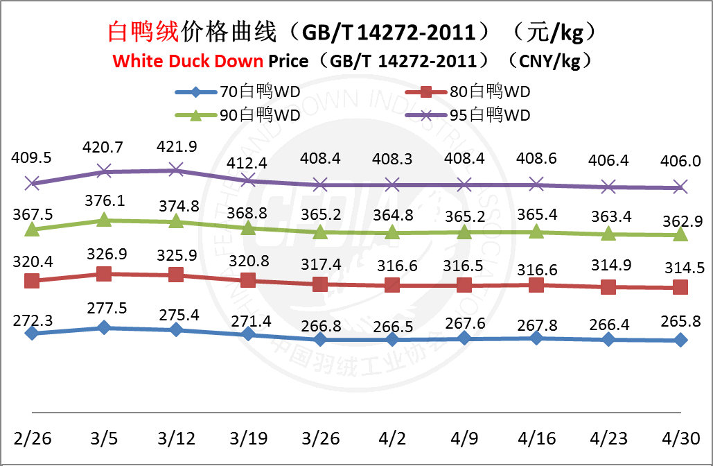 In order to keep abreast of the market situation of down industry meanwhile maintain healthy market competition order, CFDIA has invited several down companies in domestic key down production areas to participate in a routine statistic of finished down price and summarized all data. From now on, CFDIA will release the summarized quotation on a regular basis.