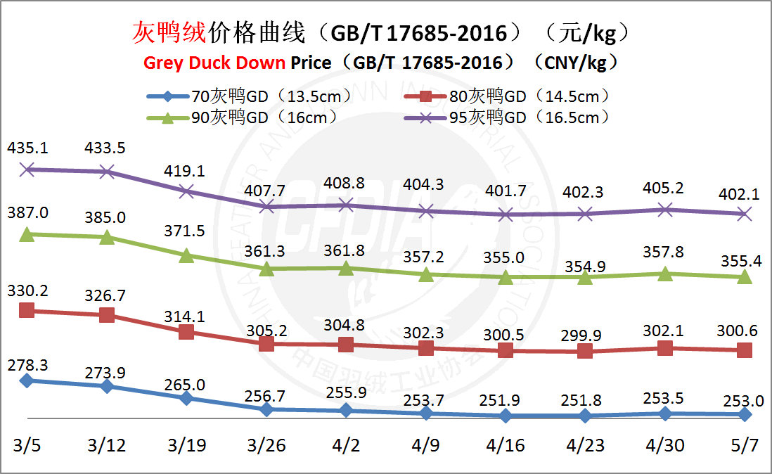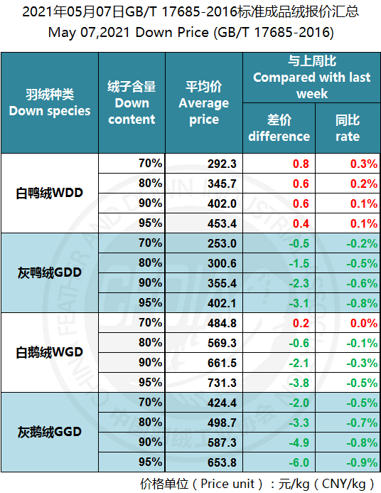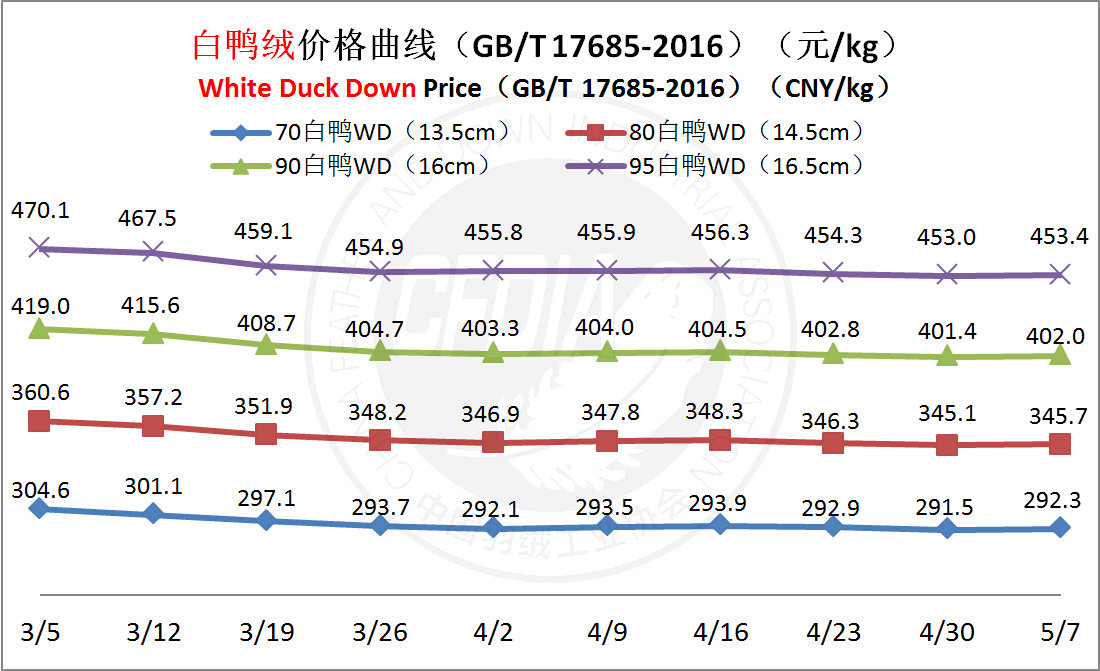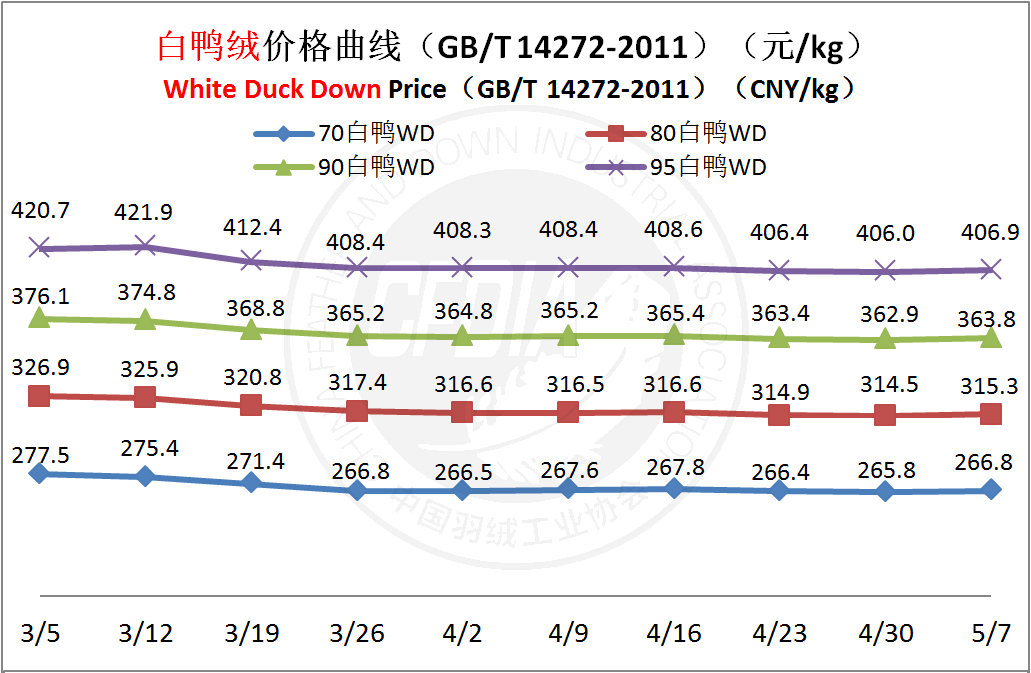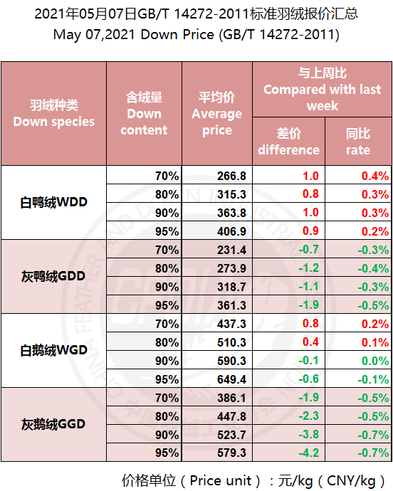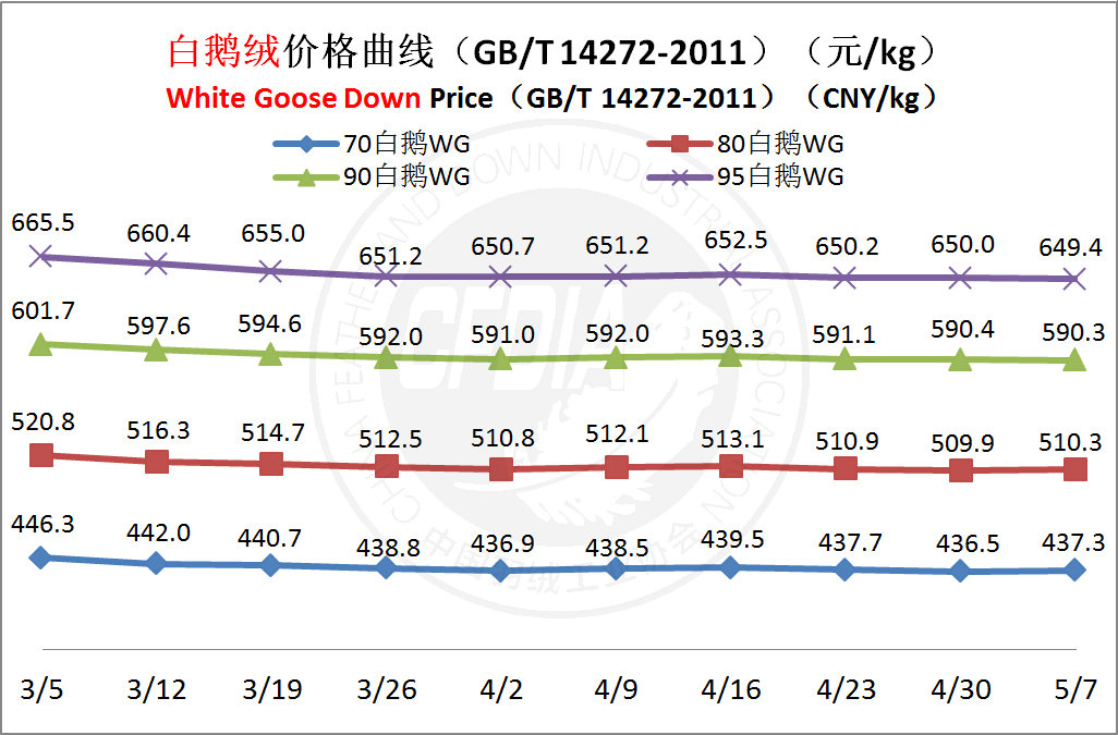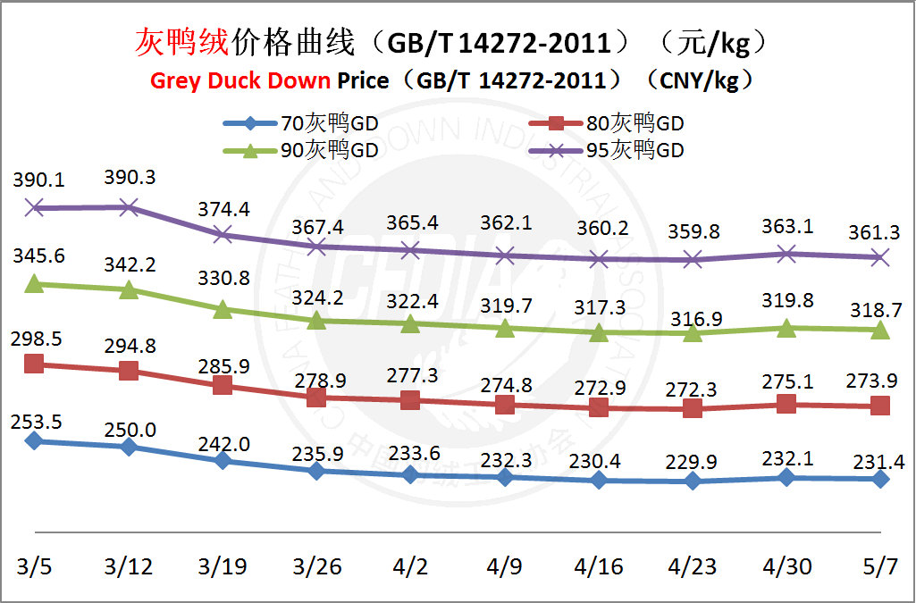 In order to keep abreast of the market situation of down industry meanwhile maintain healthy market competition order, CFDIA has invited several down companies in domestic key down production areas to participate in a routine statistic of finished down price and summarized all data. From now on, CFDIA will release the summarized quotation on a regular basis.