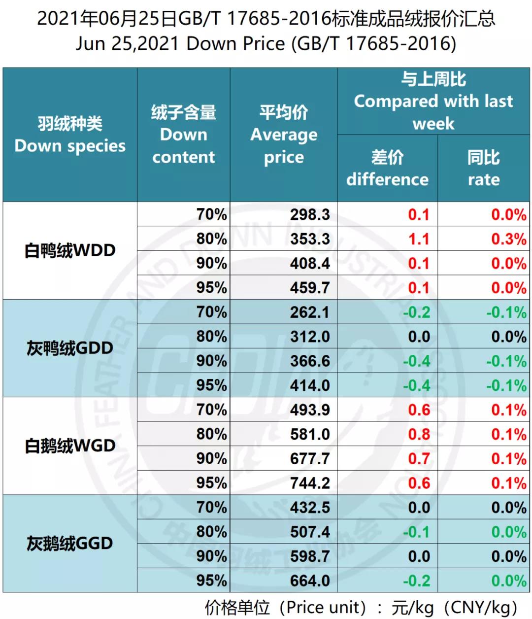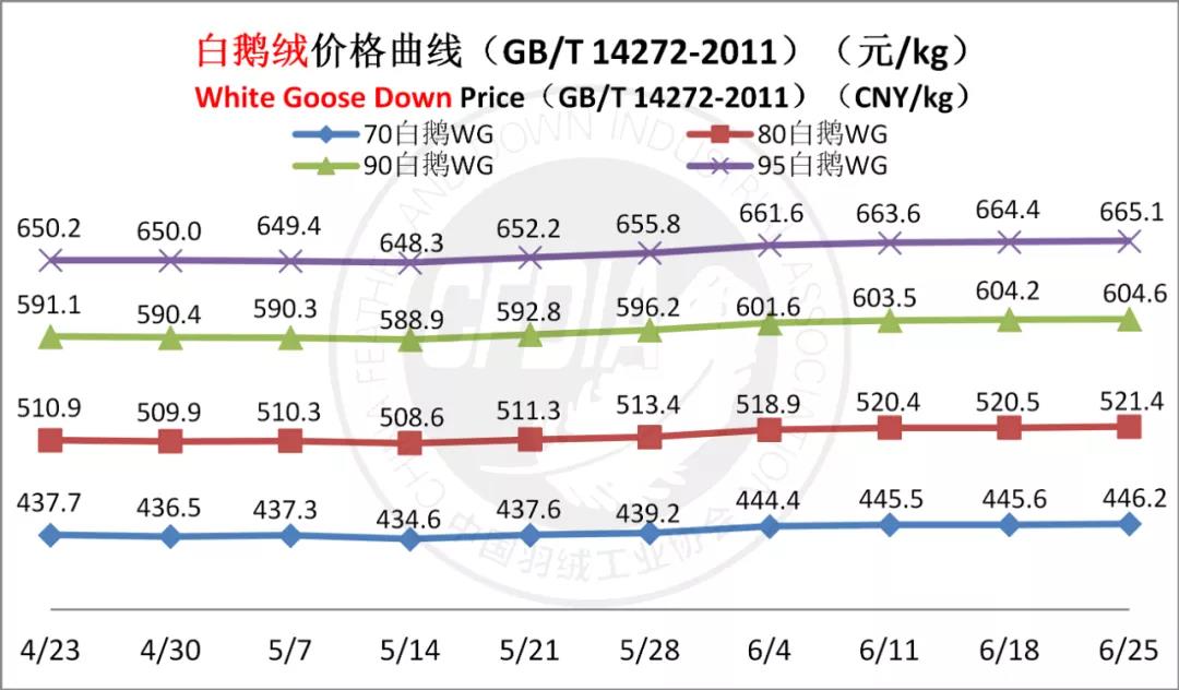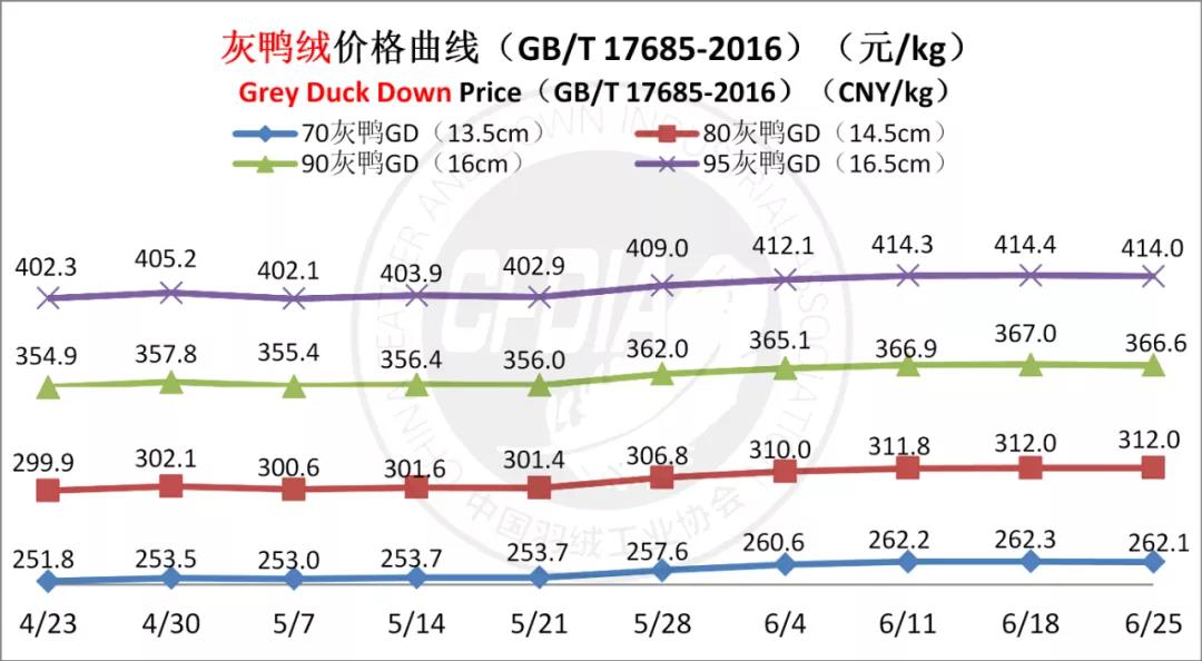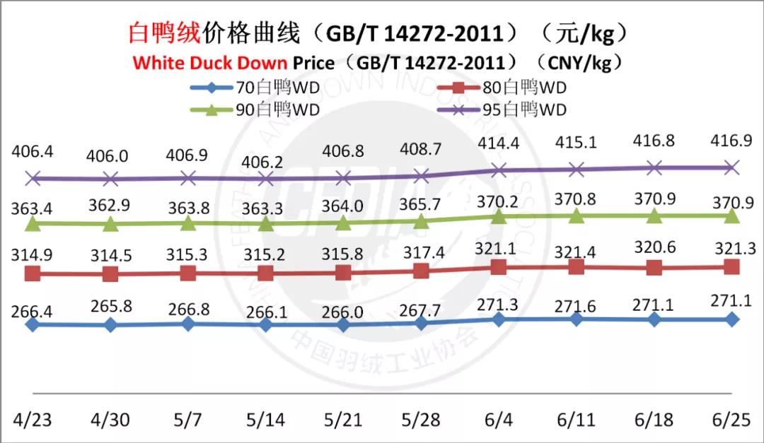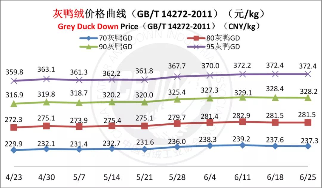 In order to keep abreast of the market situation of down industry meanwhile maintain healthy market competition order, CFDIA has invited several down companies in domestic key down production areas to participate in a routine statistic of finished down price and summarized all data. From now on, CFDIA will release the summarized quotation on a regular basis.