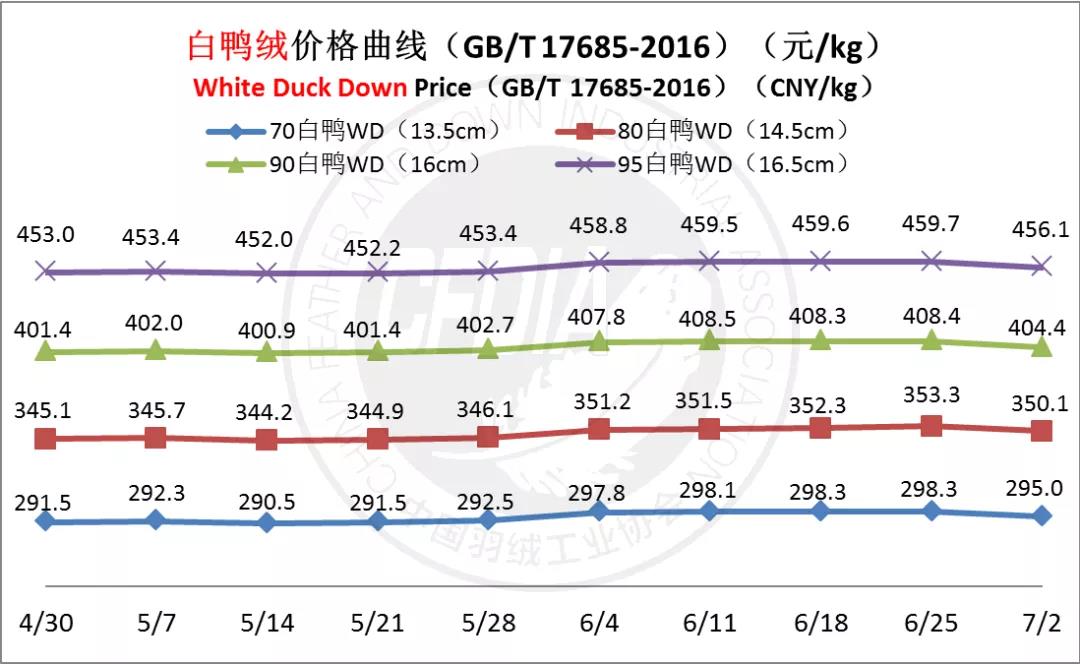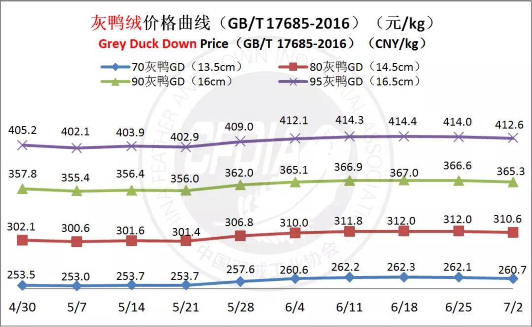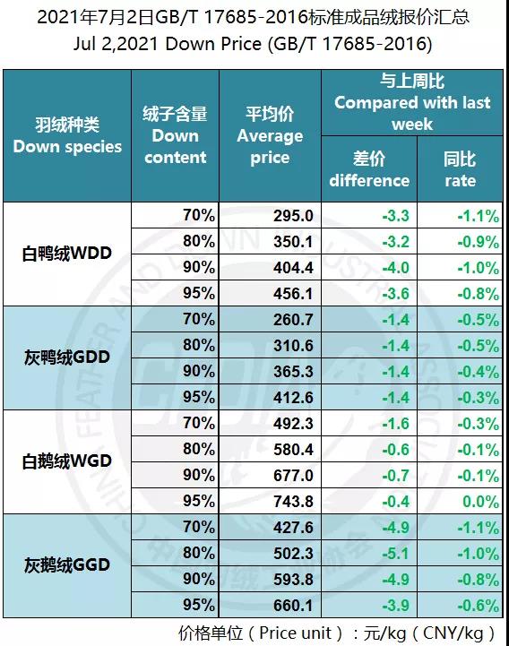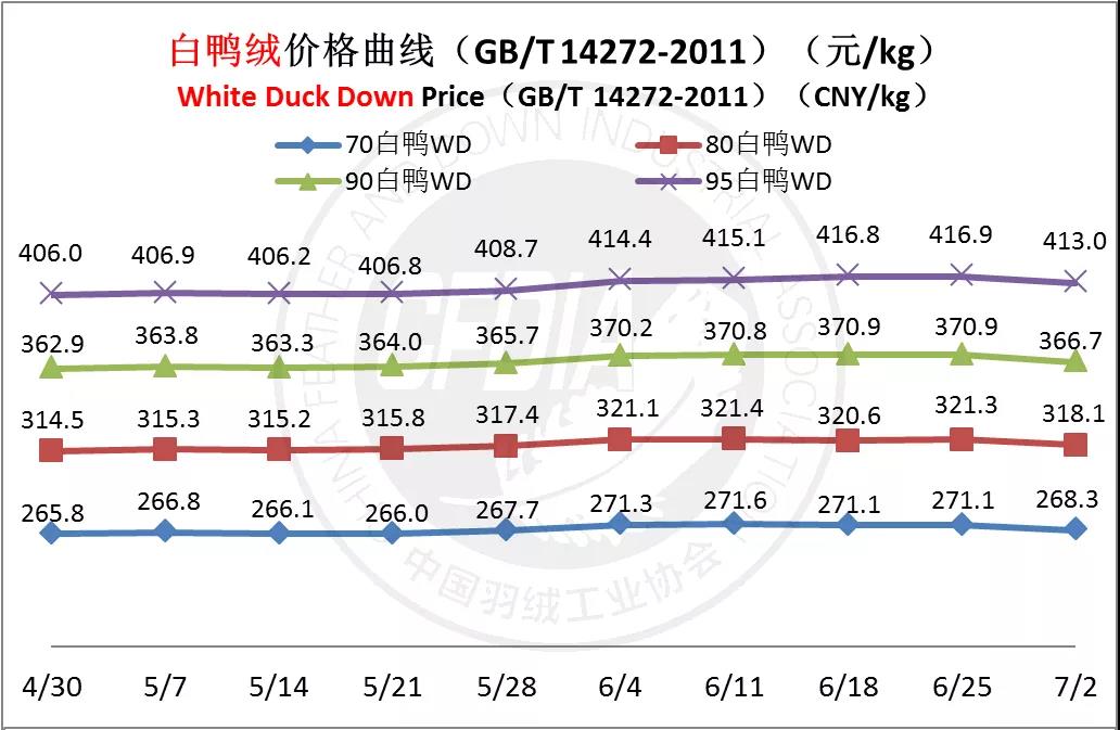 In order to keep abreast of the market situation of down industry meanwhile maintain healthy market competition order, CFDIA has invited several down companies in domestic key down production areas to participate in a routine statistic of finished down price and summarized all data. From now on, CFDIA will release the summarized quotation on a regular basis.